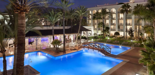 Lokalisert i Puerto Banus tett på stranden og 5 minutters spasertur fra butikker og restauranter ligger Melia Banus. Hotellet som er et fint 4* har totalt 200 rom med store gode senger. Laget har eget adskilt spiserom hvis det ønskes. Hotellet har en lite gym, samt et innendørs svømmebasseng. Utendørsbasseng samt tennisbane finnes også, og selvfølgelig gratis WIFI.